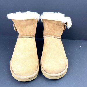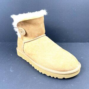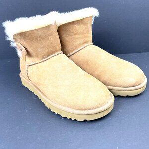 New UGG Mini Bailey Button II Sheepskin Boots Chestnut, Size 7 (1016422W/CHE)