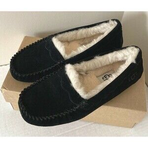 New UGG Scalloped Women Fashion Moccasin Slippers US Size 5 Black