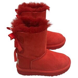 New UGG Toddler Bailey Bow II Red Suede Sheepskin Snow Boots Kids Girl