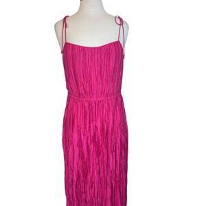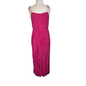 New without Tags, ULLA JOHNSON Orla Dress is Crafted of Satin Plissé Crushed Pleats, Featuring Spaghetti Strap Shoulder Ties, Elastic Waist, and Side Zip Closer MSRP: $650