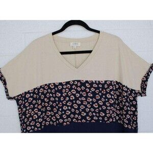 * Pullover style with v neckline. Made in 3 bands of fabric with solid colors top and bottom and cheetah print band in the middle.