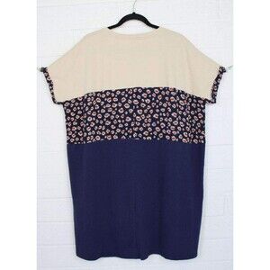 New UMGEE M L Navy Ecru Red Cheetah Block Print Oversized Cotton Knit Dress