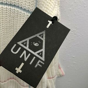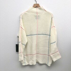 New with Tags UNIF white oversized chunky knit sweater with pastel grid pattern, long sleeves, and high neck. Size Small.