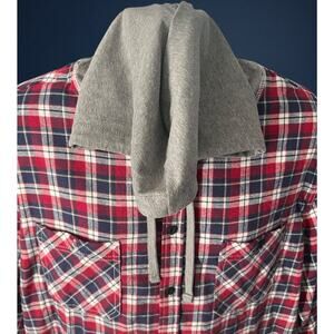 New UNIONBAY Men’s XL Flannel Shirt Hoodie Red Plaid Button Down Long Sleeve