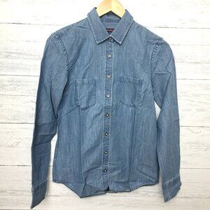 New UNTUCKit Women's Cotton Chambray Shirt Button Up Denim Alleanza size 0