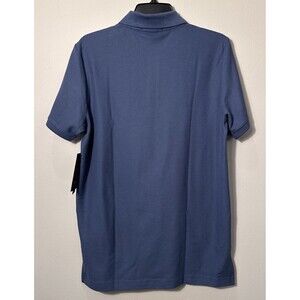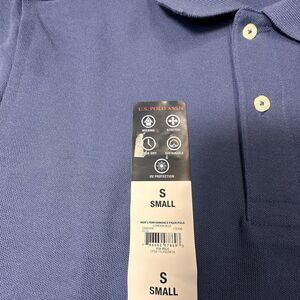 This is a new U.S. Polo Assn. men's polo shirt in size Small, with short sleeves and a button-down collar. The shirt is in a stylish London Blue color and is made of a polyester and cotton blend. It features performance qualities such as wicking, quick dry, and breathable fabric, making it ideal for activities like walking and golf in all seasons.