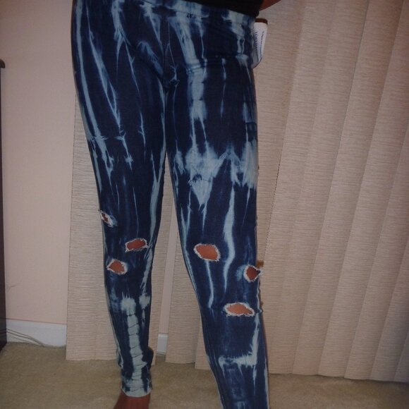 New USA Distressed Denim Skinny Jeans Pant Jegging Eclipse Tie Dye Leggings sz 0