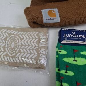There are 4 new pairs of socks here with a like new Carhart sock hat, an awesome lot!
