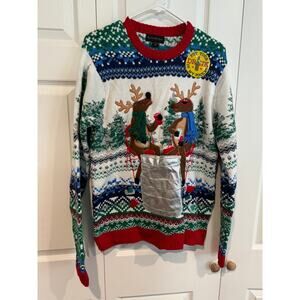 New Ugly Sweater Reindeer drink pouch sweater size medium