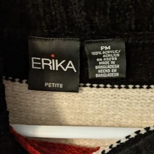 New, NWOT, Soft, Ultrasoft, Acrylic, Erika, Petite, Women, Asymmetrical, Women's, Woman, Erika Petite, Comfy, Cozy, Fall, Winter, Warm, Cold Weather, Color Block, Red, Black, White, Grey, Gray, 100% Acrylic, Striped, Stripes, Size Medium, Size M, Size PM, Size Petite Medium, Everyday, Button Up Neckline, High Neck, 90s, 1990s, Vintage, Knit, Cowl Neck, Knitwear, Gorgeous, Stunning, Velvety, Long Sleeve, Top, Shirt