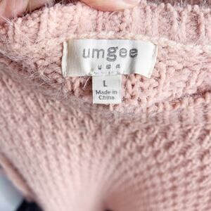 New Umgee L Pink Orange Blue Striped Sleeve Knit Sweater Crew Ribbed Chunky Knit