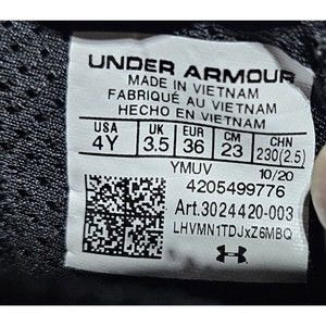 Elevate your child's basketball game with these Under Armour Stephen Curry 8 Flow sneakers. With a sleek black color and mid-top shoe shaft style, these athletic sneakers are perfect for activewear occasions. They are available in a UK shoe size of 5, US shoe size of 4, and an EU shoe size of 38.