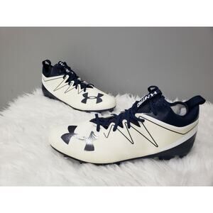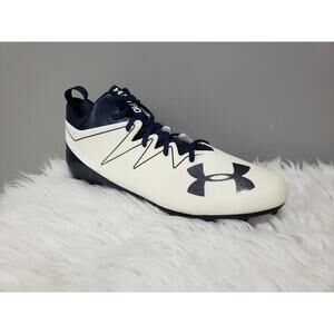 New Under Armour UA Nitro Mid MC White Navy Football Cleats 1269713-141 Size 16