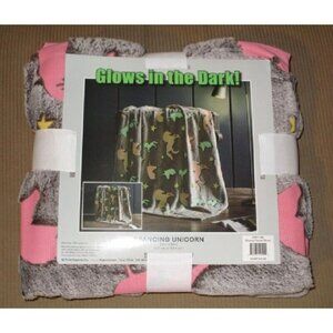 Brand New Glow in the Dark 'Prancing Unicorns' Soft Plush Throw Blanket