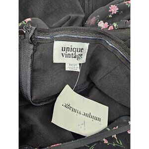 New Unique Vintage Dress Womens 3x 20 Plus Black Floral Chiffon Overlay