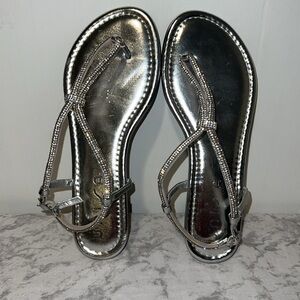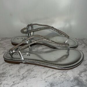 New Unisa Silver Sparkle Flat Sandals Undelray