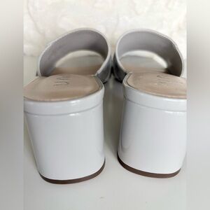Elegant mules with a shiny silver finish. Features a stylish buckle accent. Perfect for elevating any outfit.
