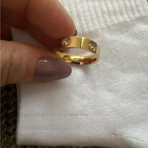 New Unisex 14k gold-plated stainless steel stone band ring, Size 7