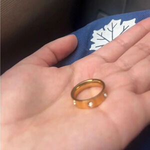 Crafted from high-quality stainless steel and finished with a lustrous 14k gold plating, this ring is a perfect blend of durability and style.