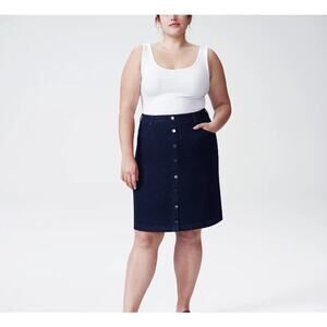 New Universal Standard Ang Button Down Denim Skirt Zipper Back Go 3XL NWT Dark Plus