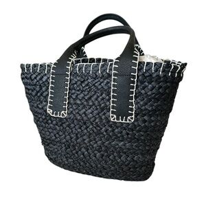 New Universal Thread Black & White Straw Mini Beach Purse/Bag