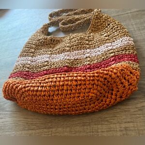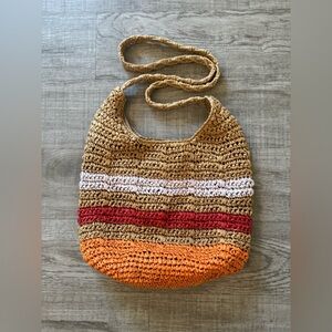 New Universal Thread Red, Orange & White Stripes Crochet Shoulder Bag