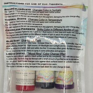 Brand new, sealed packaging of Solar Color Dust Thermal Drops. Package contains 3 bottles of drops, each containing 10 ml of colors. Color bottles include Purple to Blue/Black to Pink/Red to Yellow