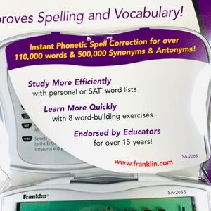 New Unopened Tech Bundle Franklin Spelling Ace & Thesaurus/ Model SA-206S silver