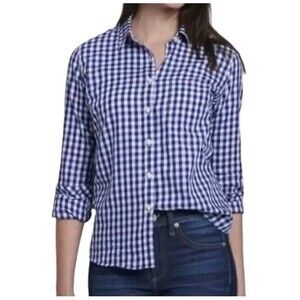 New Untuckit Women's Size 2 Belleza Gingham Checkered Button Down Shirt Navy