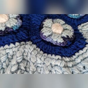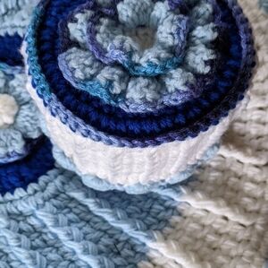 New Unused Hand Crocheted Bathroom Set Rug and Toilet Paper Cover Blue & White