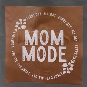 This bag was made by upcycling a new reusable tote bag with a Mom Mode Every Day All Day quote on one side (to (mostly) cover up an old store logo) and the message "Hello Beautiful" on the other side. Bag measures approx 15" by 14" with an 8" strap drop. So cute!