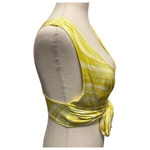 New Urban Outfitter Yellow Swirl Plunge Neckline Crossed Tie Back Crop Top SmalL
