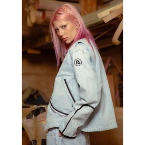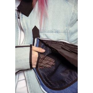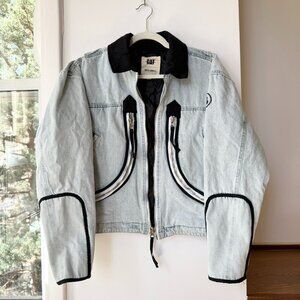 New Urban Outfitters CAT x Reclaimed LA Denim Jacket Jean Blue Black Zip Up