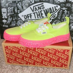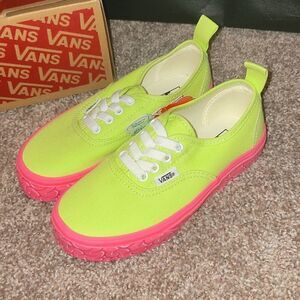 New VANS Brain Wall Green Authentic Elastic Lace Kids Shoes Size 13.5