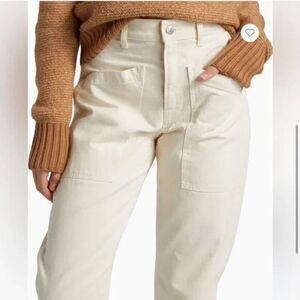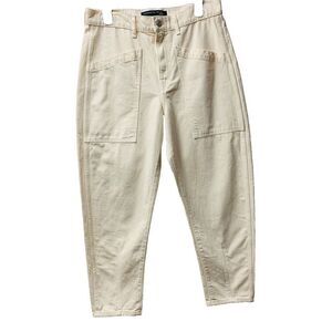 Veronica Beard Charlie Barrel Leg JeansSize 30High riseColor/wash: Ecru (cream)100% cottonMachine washBelt loopsZip and button flyFront and back patch pocketsStyle J21109500892EC