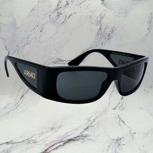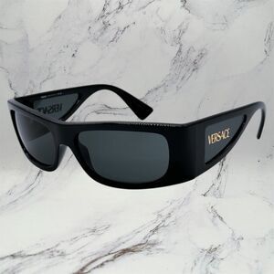 2,500 + Satisfied Customers with Positive Selling Reviews AUTHENTICITY GUARANTEED 100% AUTHENTIC and BRAND NEW VERSACE New Sunglasses - 100% Authentic! Included In Sale: Versace Box, Versace Case, Versace Polish Cloth, Versace Care Material Item Details * Brand: VERSACE * New VERSACE Sunglasses * Black Acetate Frame * VERSACE Letter Logo in Gold on both Temple Arms * Gray Lens * Wrap Square Shield Mask Silhouette Frame * Unisex Eyewear * 100% UVA/UVB Protection * Made In Italy * Measurements: Lens/Bridge/ Temple (in mm) 54-17-135 100% Authentic - 100% Positive Feedback - Trusted Seller! Designer Items Up to 90% Off Retail - Daily Shipping - Fast Shipping! 675