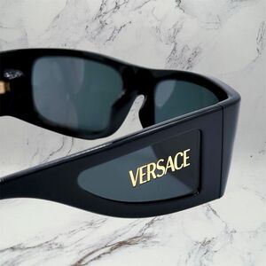 2,500 + Satisfied Customers with Positive Selling Reviews AUTHENTICITY GUARANTEED 100% AUTHENTIC and BRAND NEW VERSACE New Sunglasses - 100% Authentic! Included In Sale: Versace Box, Versace Case, Versace Polish Cloth, Versace Care Material Item Details * Brand: VERSACE * New VERSACE Sunglasses * Black Acetate Frame * VERSACE Letter Logo in Gold on both Temple Arms * Gray Lens * Wrap Square Shield Mask Silhouette Frame * Unisex Eyewear * 100% UVA/UVB Protection * Made In Italy * Measurements: Lens/Bridge/ Temple (in mm) 54-17-135 100% Authentic - 100% Positive Feedback - Trusted Seller! Designer Items Up to 90% Off Retail - Daily Shipping - Fast Shipping! 675