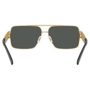 New VERSACE Sunglasses Gold Metal Greca Logo Rectangle Black Gray