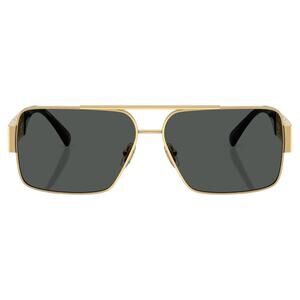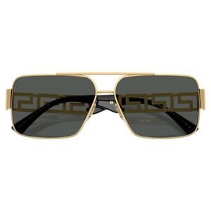 New VERSACE Sunglasses Gold Metal Greca Logo Rectangle Black Gray