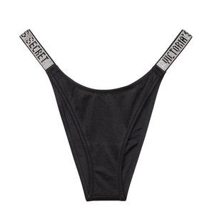 New VICTORIA'S SECRET Shine Strap Brazilian Bikini Bottom Swim Panty Black