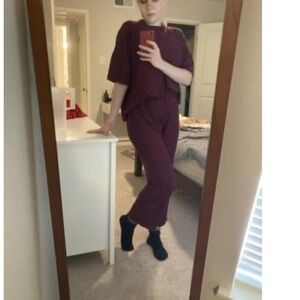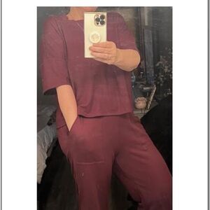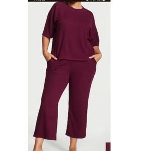 New VICTORIA'S SECRET Glow Waffle Tee & Pants Set burgundy large