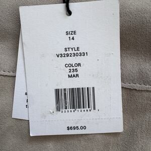 Absolutely stunning BRAND NEW WITH TAGS VINCE 100% lambs leather suede long skirt with interior short lining, size 14. Retails for $695..front wrap slit, a versatile and classic wardrobe piece to last forever. The waist measures approximately 17.7 inches, length of 33 inches.