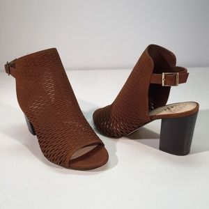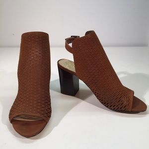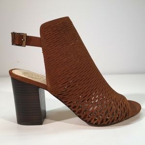 New VINCE CAMUTO Walnut Perforated Leather Sandals