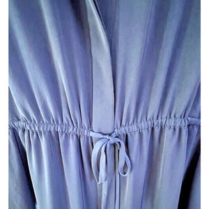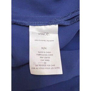 This beautiful blue maxi dress from VINCE is a must-have for any wardrobe. With a flattering V-neckline and long sleeves, it's perfect for any occasion, whether you're attending a wedding or simply running errands. The dress features a button closure and a side slit, adding a touch of elegance to an already stylish piece. Made from high-quality polyester fabric (IN MY OPINION, LOOKS LIKE SILK, VERY FLOWY), this dress is comfortable and durable, making it a great choice for any season. The dress is a size M and has a regular fit. It's a perfect addition to any woman's wardrobe, and it's sure to turn heads wherever you go.
