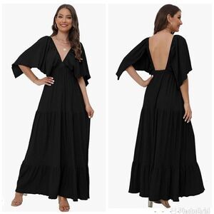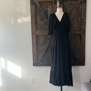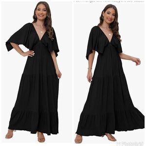 New no tag sorry sun was hitting to much on my window so makes it not look as black it is black , This effortless maxi dress that is free and flowing forever has a V-neck and a tiered silisse with the fluttering sleeves. Soft, structured elastic empire waist effortless pull-on design effortlessly by the sea for a relaxed, who-and-go approach.