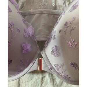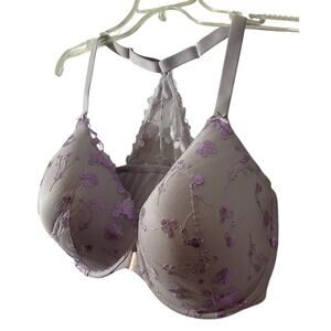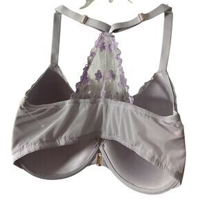 This Victoria's Secret Body By Victoria bra is a beautiful addition to your lingerie collection! The lavender lace and racerback design add a touch of elegance, while the lightly padded underwire provides comfortable support. The front hook closure makes it easy to put on and take off. Don't miss out on this stunning piece!