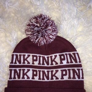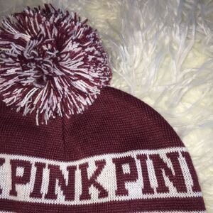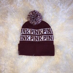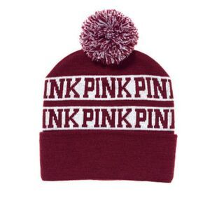 ❄️ New VS PINK Maroon Pom Beanie Hat ❄️