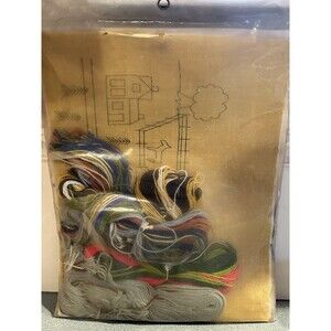 New VTG Coats & Clark Crewel Stitchery Kit Primitive Landscape 5809 Embroidery