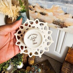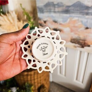 New VTG Set Of 2 Lenox Tealight Candle Holder & A Pierced Snowman Charm Decor.