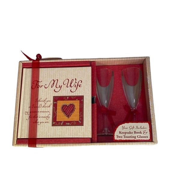 New Valentine’s Boxed Gift Set With For My Wife Keepsake Book and Two Toasting G